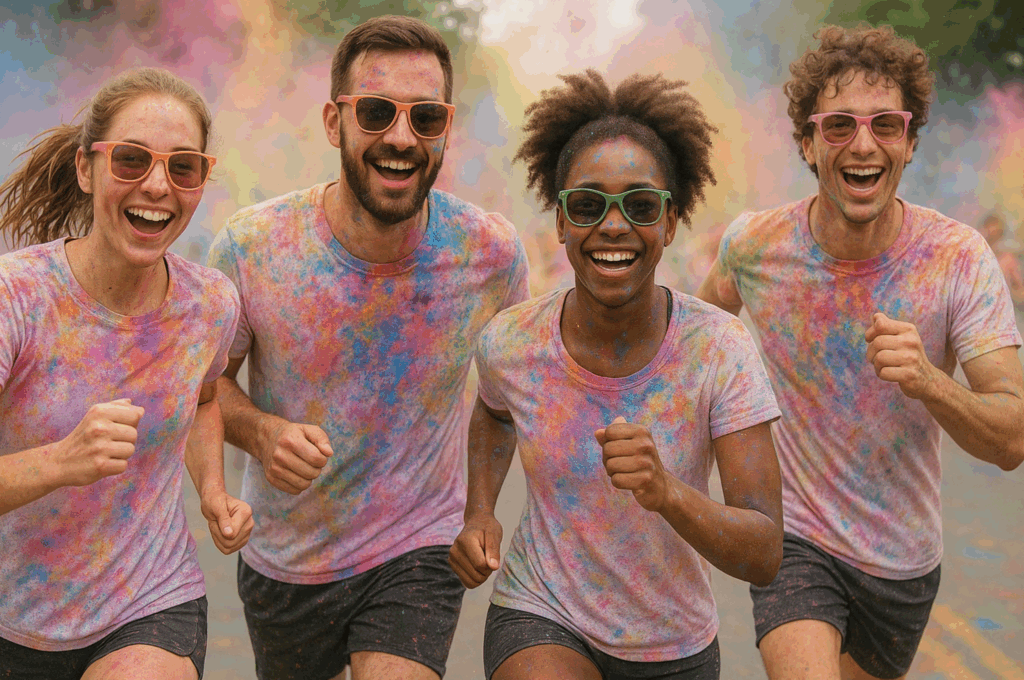 The Color Craze Run is all about fun over finish times. It’s a 3–5K untimed course where runners, walkers, and first-timers get showered in bursts of colored powder throughout the route. You’ll start in a plain white or black tee, and by the end you’ll be covered head to toe in bright shades, looking more like a moving mural than a runner.