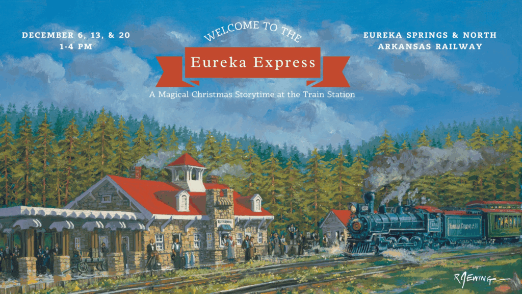 The Eureka Springs & North Arkansas Railway is bringing back its Eureka Express experience for three special Saturdays this December. Climb aboard a vintage excursion car decked out for the holidays, settle in by the wood stove, and listen to Santa share Christmas stories while you sip hot cocoa.