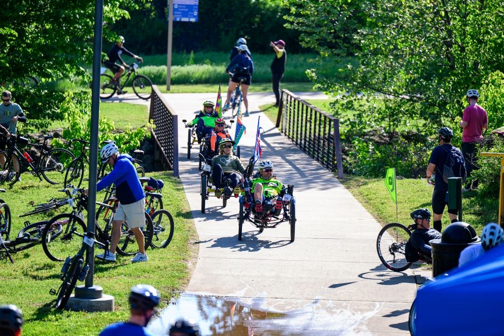 The ride is self-paced. Some riders cruise with friends, others push harder. Everyone meets at the Upper Ramble for the post-ride celebration.