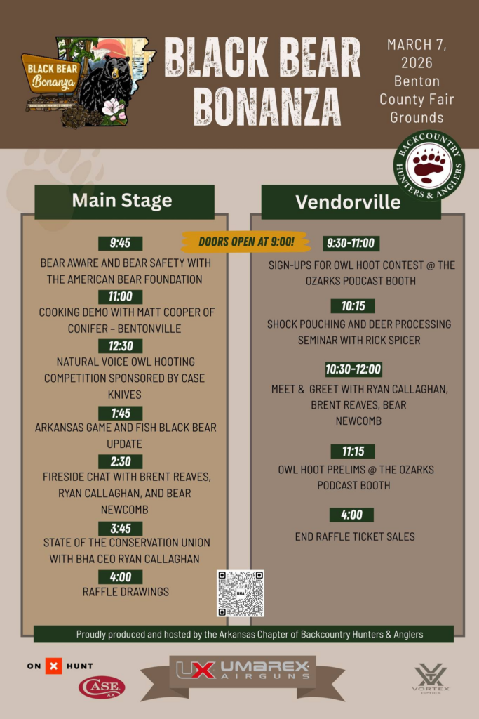 Black bears have roamed Arkansas longer than most of us have called it home, and the Black Bear Bonanza is a full day dedicated to celebrating that story. Presented by ONX Maps, the event brings together conservation leaders, outdoor families, and wildlife enthusiasts for seminars, activities, contests, and a whole lot of raffle prizes.