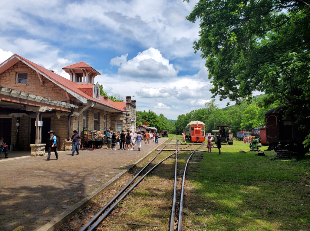 The railway runs excursion rides through the Ozarks behind a 1940-era diesel locomotive. The depot features stationary steam locomotive exhibits and an authentic turntable that rotates the engine at the end of each run. The Eurekan Dining Car takes it a step further with lunch and dinner rides where prepared cuisine is served onboard as the train moves through the scenery. The Baggage Room Gift Shop is also on-site for railroad-related gifts and souvenirs.