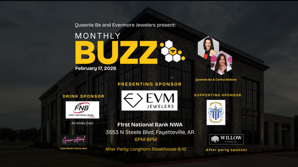 NWA HIVE Networking brings its Monthly Buzz to F1rst National Bank in Fayetteville, and this one has a track record. Their events consistently pull in over 300 attendees. That’s a room full of professionals, creatives, and community builders with business cards ready.