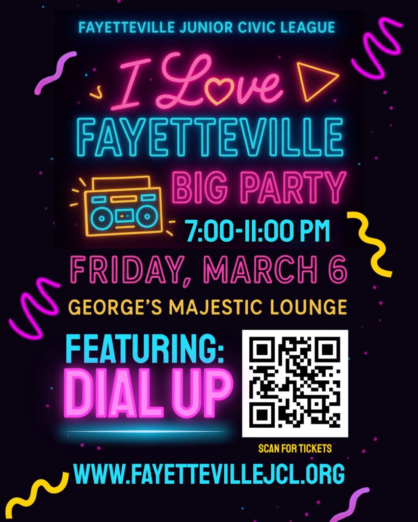 The Fayetteville Junior Civic League is throwing a party. If you’ve been waiting for an excuse to relive the 90s, this is it. George’s Majestic Lounge is about to get loud, nostalgic, and packed with people ready to dance the night away.