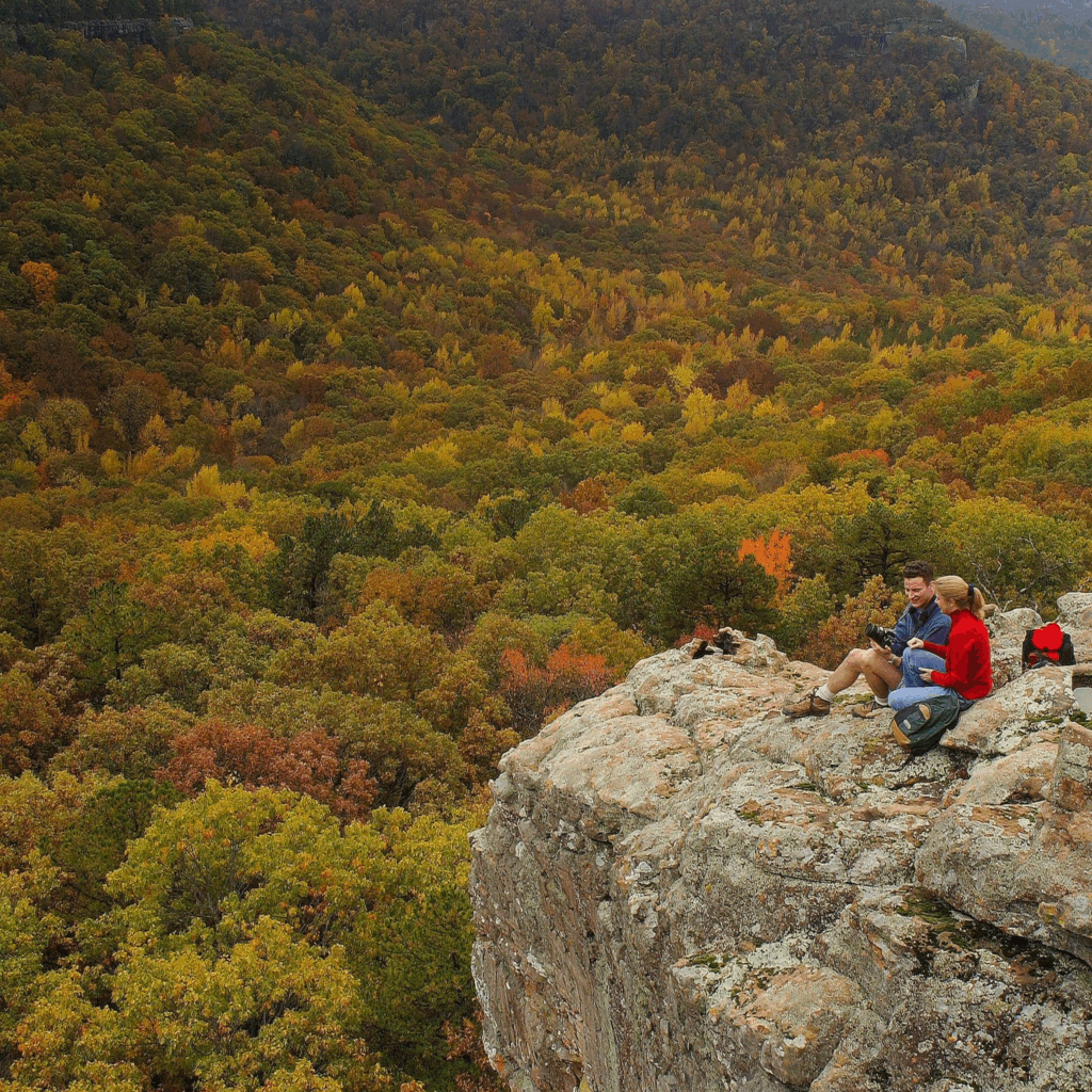 After the train ride, you’ll head to Devil’s Den to hike the Yellow Rock Overlook which is an easy to moderate 2.7 mile loop with an overlook that will give foliage views of the Lee Creek Valley.