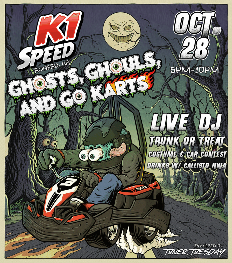 K1 Speed Rogers invites you to spend the evening racing in costume, competing for prizes, and celebrating with your community. Tackle the track, trunk-or-treat stations for the kids, and costume and car contests to give everyone a chance to shine make this Halloween a festive celebration. Live music and local drinks with a venue that brings the thrills, you and your family are the only ones that are missing.