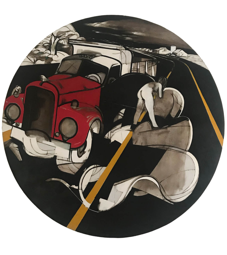 Keller’s work layers cultural references, religious themes, personal memories, and immediate experiences on canvas. His paintings transform the mundane into something that makes you stop and look twice.