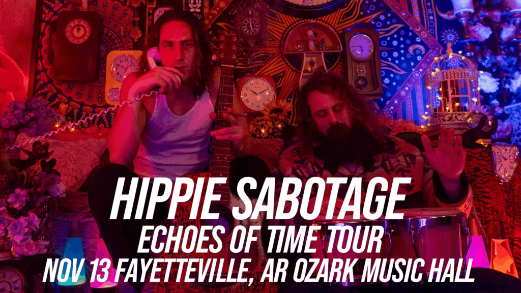 Electronic duo Hippie Sabotage is making their third trip to Northwest Arkansas. The California brothers pack their sets with heavy bass, hip-hop-influenced beats, and wall-to-wall projections. Their Echoes of Time Tour features atmospheric production and pulsing rhythms that build and drop throughout the night.