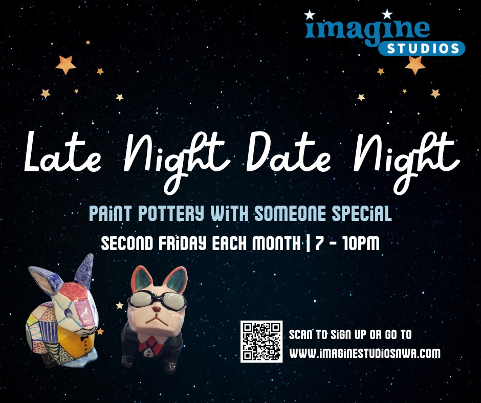 Imagine Studios in Rogers turns Friday nights into something a little more interesting. This monthly adults-only pottery event gives you a reason to put down your phone and actually make something with your hands.