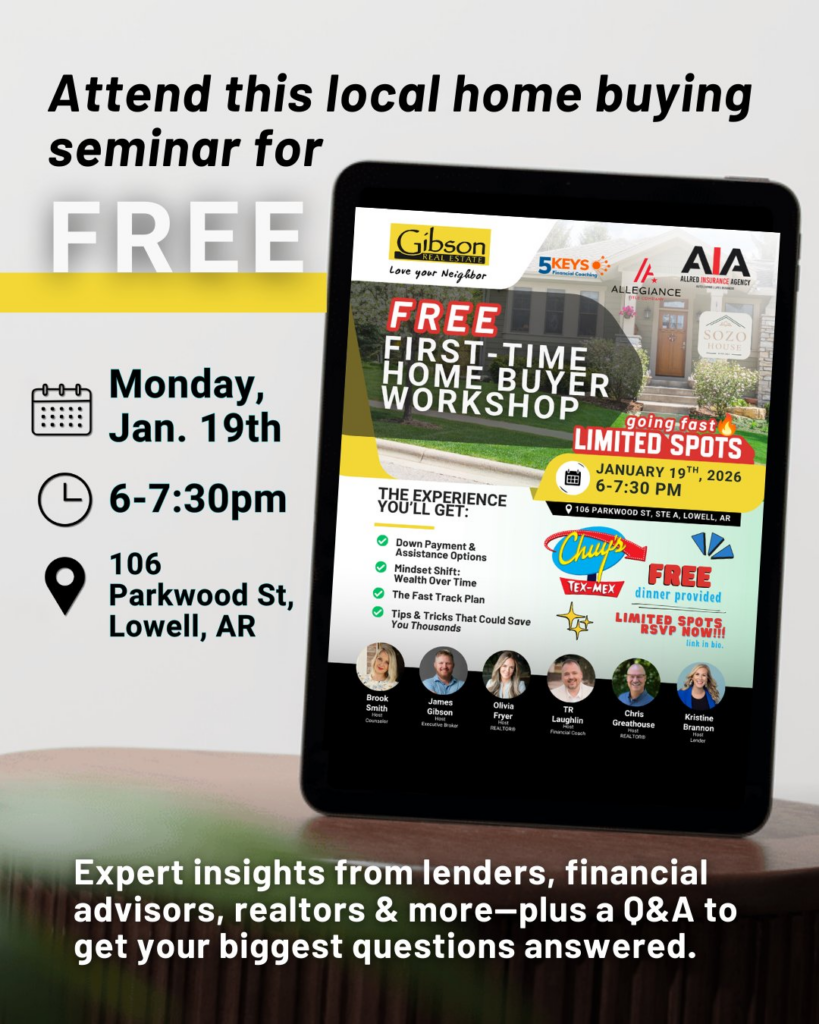 The workshop features Realtors, a loan officer, a financial coach, a counselor, and representatives from insurance and title companies. You’ll get straightforward answers from people who work with Northwest Arkansas buyers every week and understand what it takes to close a deal in this market.