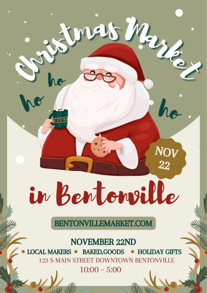 Downtown Bentonville gets festive this Saturday as the Bentonville Market hosts a full day of holiday shopping. The seven-hour event fills Main Street with vendor booths for a day of gift hunting and seasonal browsing.