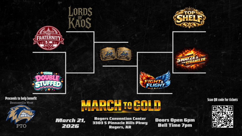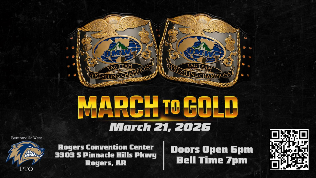 Tickets are available at omw32126.eventbrite.com. Show up ready for championship wrestling at Rogers Convention Center, and support Bentonville West High School PTO in the process.