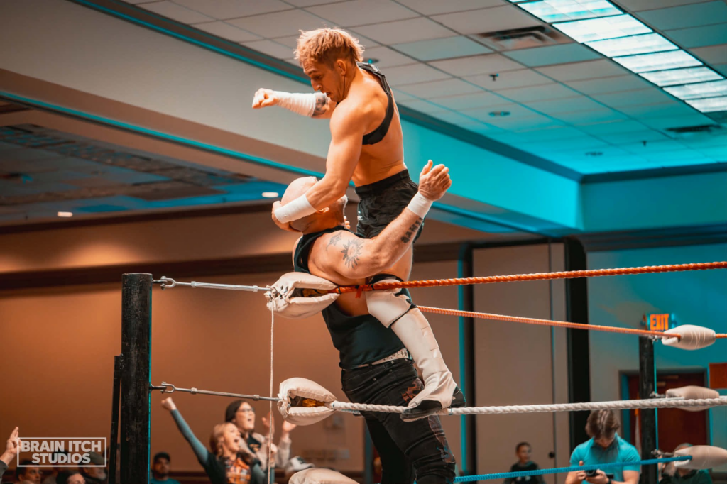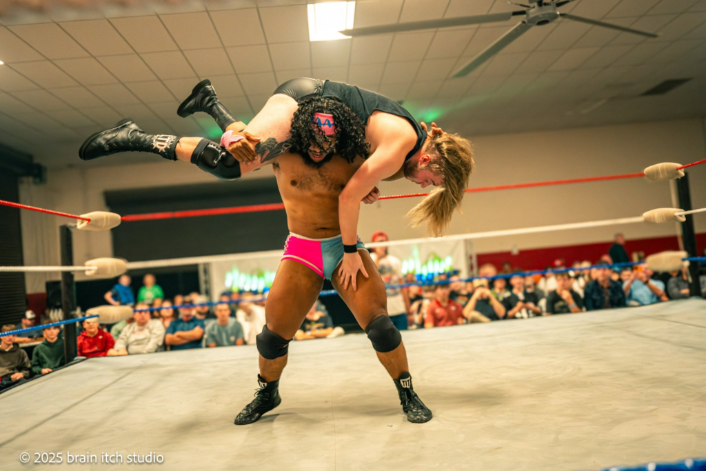 This is live wrestling entertainment in the style of WWE, with local athletes competing for championship gold. Six tag teams battle through a single-elimination tournament, and by the end of the evening, one team walks out with the inaugural OMW Tag Team Championship belts.
