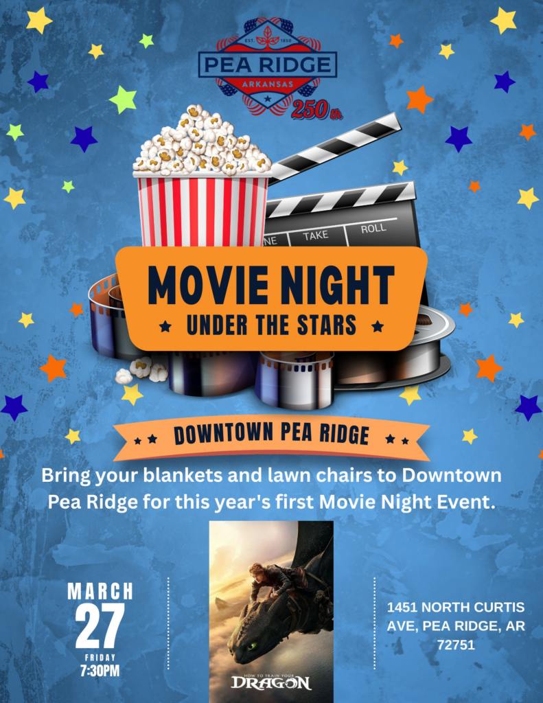 Pea Ridge Parks & Recreation is hosting its first Movie Night Under the Stars of the year, and there’s no cost to get in. Set up your spot on the lawn, settle into your chair, and watch Hiccup and Toothless take flight on the big screen with the night sky overhead.