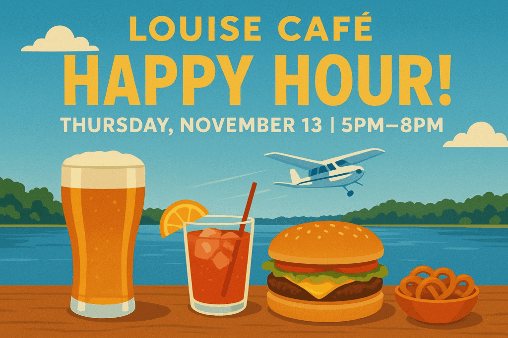 Thursday just became the unofficial start to your weekend. Louise Café at Bentonville’s FLY OZ Aviation Center is hosting happy hour with drink specials, comfort food, and front-row seats to planes taking off over Lake Bentonville.