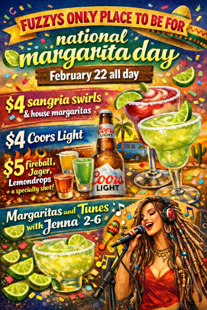 Round up your crew and head to Fuzzy’s Taco Shop. National Margarita Day only happens once a year, and this one is worth showing up for.