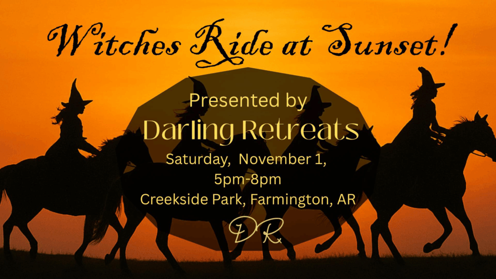 By 6:30 PM, the adventure begins as you ride through NWA’s beautiful sunset. This is a guided ride, so if you’re a beginner, you are definitely welcome. All you need to bring is clothes you can ride in comfortably, closed-toe shoes or boots, and if you’re feeling extra witchy, some additional hat decorations to make your look uniquely yours.