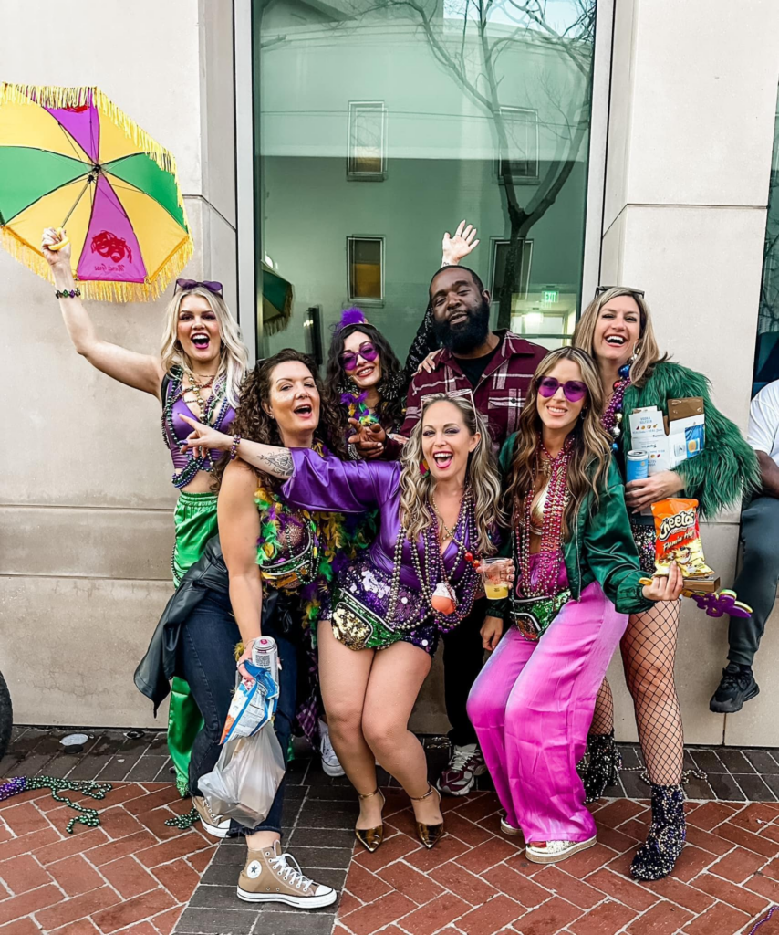 The vibe leans more toward day drinking with your friends while wearing ridiculous headwear than formal dress ball, which feels exactly right for Mardi Gras.