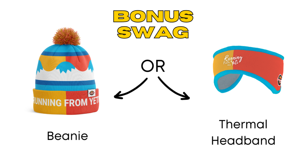 Arrival time is 7:00 AM sharp and strictly enforced. If you’re coming from out of town and missed Friday’s packet pickup, you can grab yours on-site between 7:00–7:50 AM. Freddie the Yeti kicks things off at 7:40 AM, then races start in waves: half-marathon at 7:50 AM, 10K at 8:00 AM, and 5K at 8:05 AM.