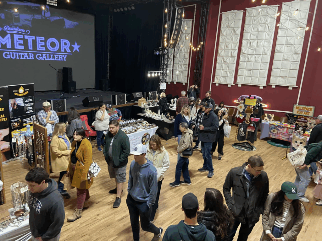 Ready to fill your shopping bags? Meet the makers, hear their stories, and find gifts that matter to you and your loved ones. Each vendor brings something special to your shopping experience, from handmade jewelry to artisan goods, all thoughtfully selected to make your holiday shopping meaningful and memorable. Every purchase you make directly supports local entrepreneurs and keeps your downtown Bentonville thriving. Plus, the Meteor Guitar Gallery setting adds a cool, creative vibe you won’t find anywhere else in your community.