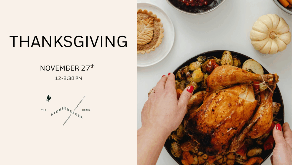 Skip the dishes and ditch the cleanup. The Stonebreaker Hotel is taking reservations for Thanksgiving Day, serving up a thoughtfully crafted feast so you can skip the kitchen stress and enjoy one of Fayetteville’s most inviting dining rooms.