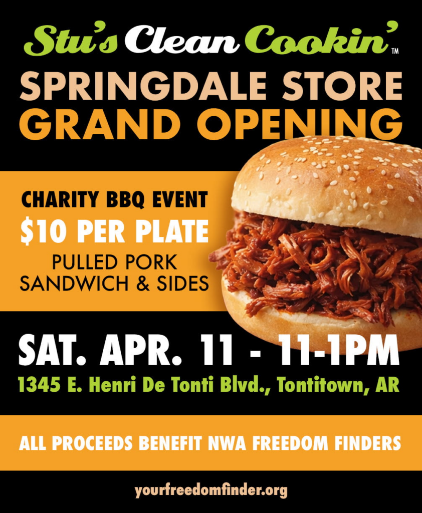 Stop by, grab lunch, and support a good cause. Learn more about NWA Freedom Finders at yourfreedomfinder.org.