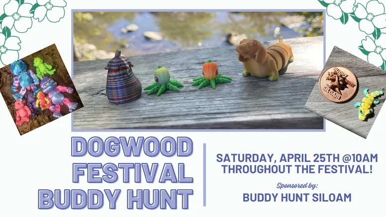 Starting Saturday at 10:00 AM, search the festival grounds for hidden 3D-printed buddies sponsored by Buddy Hunt Siloam.