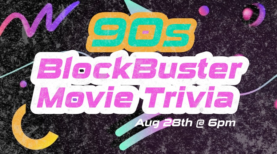 We’re talking Jurassic Park, Pulp Fiction, and all those VHS favorites you couldn’t stop replaying. The trivia questions will take you straight back to those Hollywood Video days, and there are prizes waiting for the sharpest movie minds in the room.