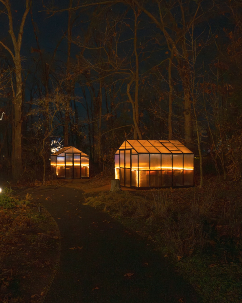 Each Winter Cottage comes with VIP access to Time Loop, so you can step outside and explore the full outdoor light and sound experience whenever you want. Inside, you’ll have a private space to enjoy drinks and bites curated for the season, all while taking in the glow of the forest around you.