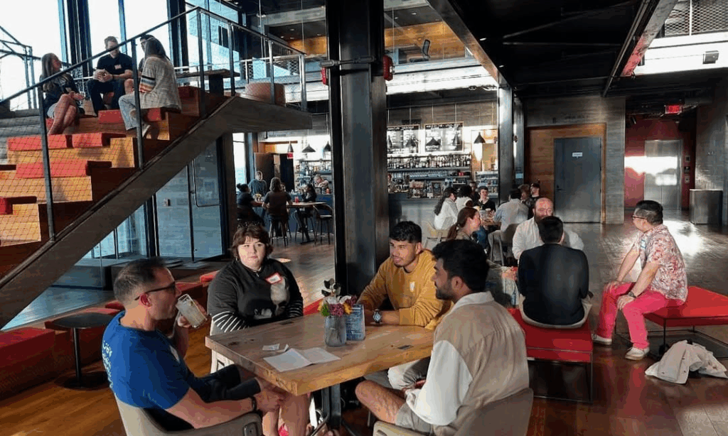 Show up hungry and ready to connect. After dinner, you’ll get details about a nearby bar where all the tables from your city meet up for an after-party. It’s a chance to keep the connections going and meet even more people.